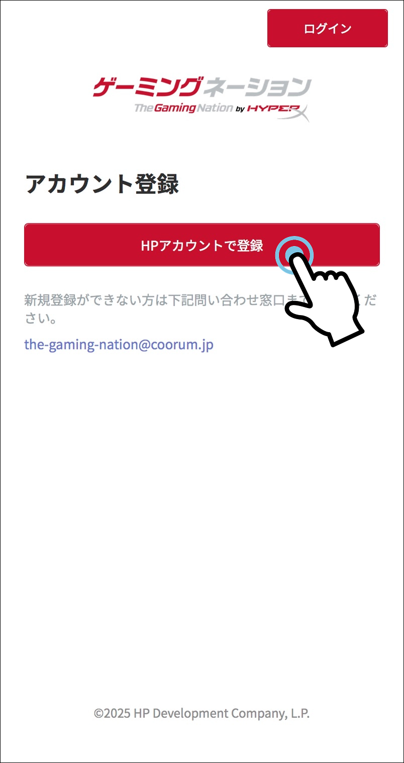 2. 「HPアカウントで登録」をタップ・クリック