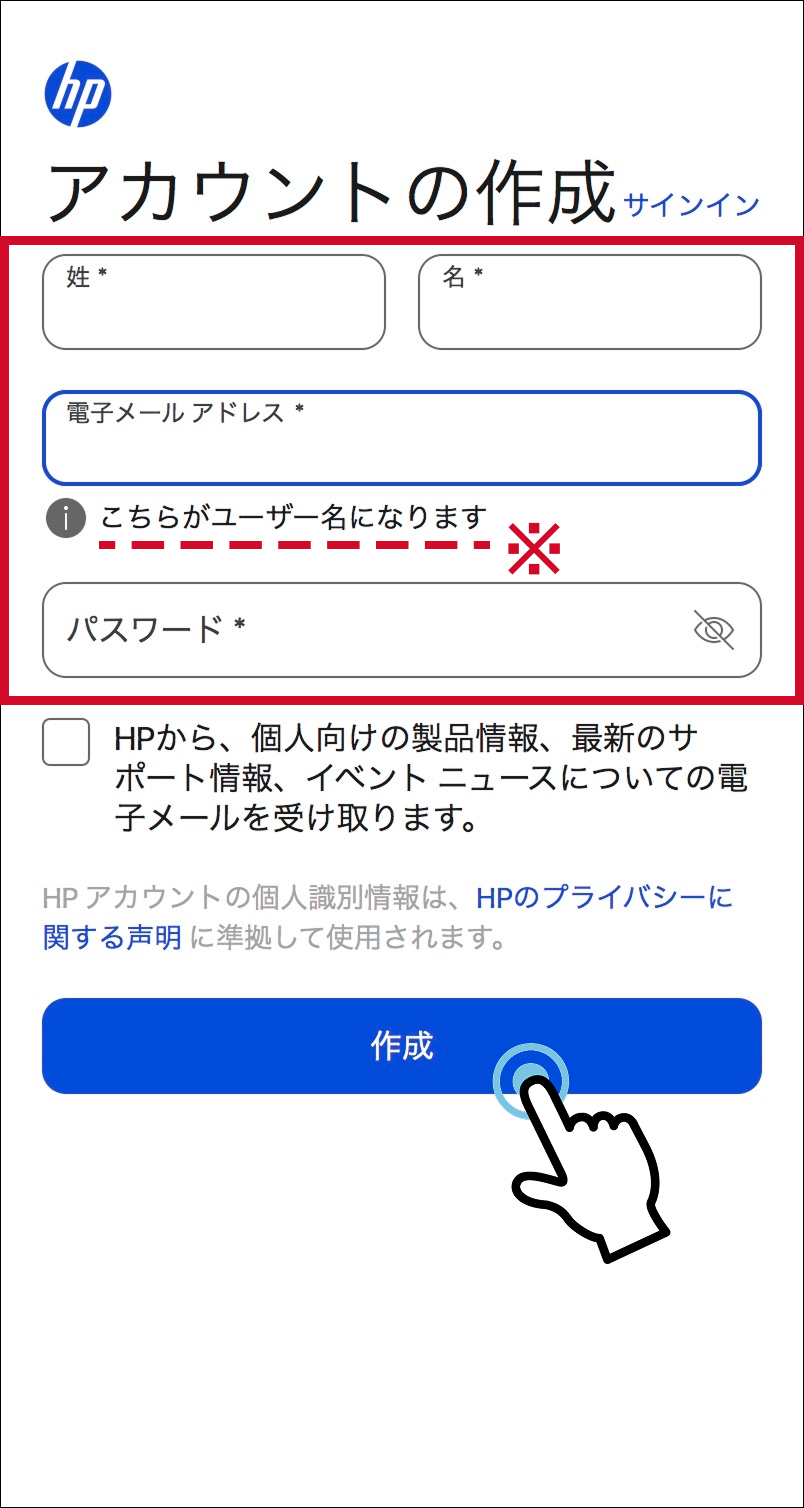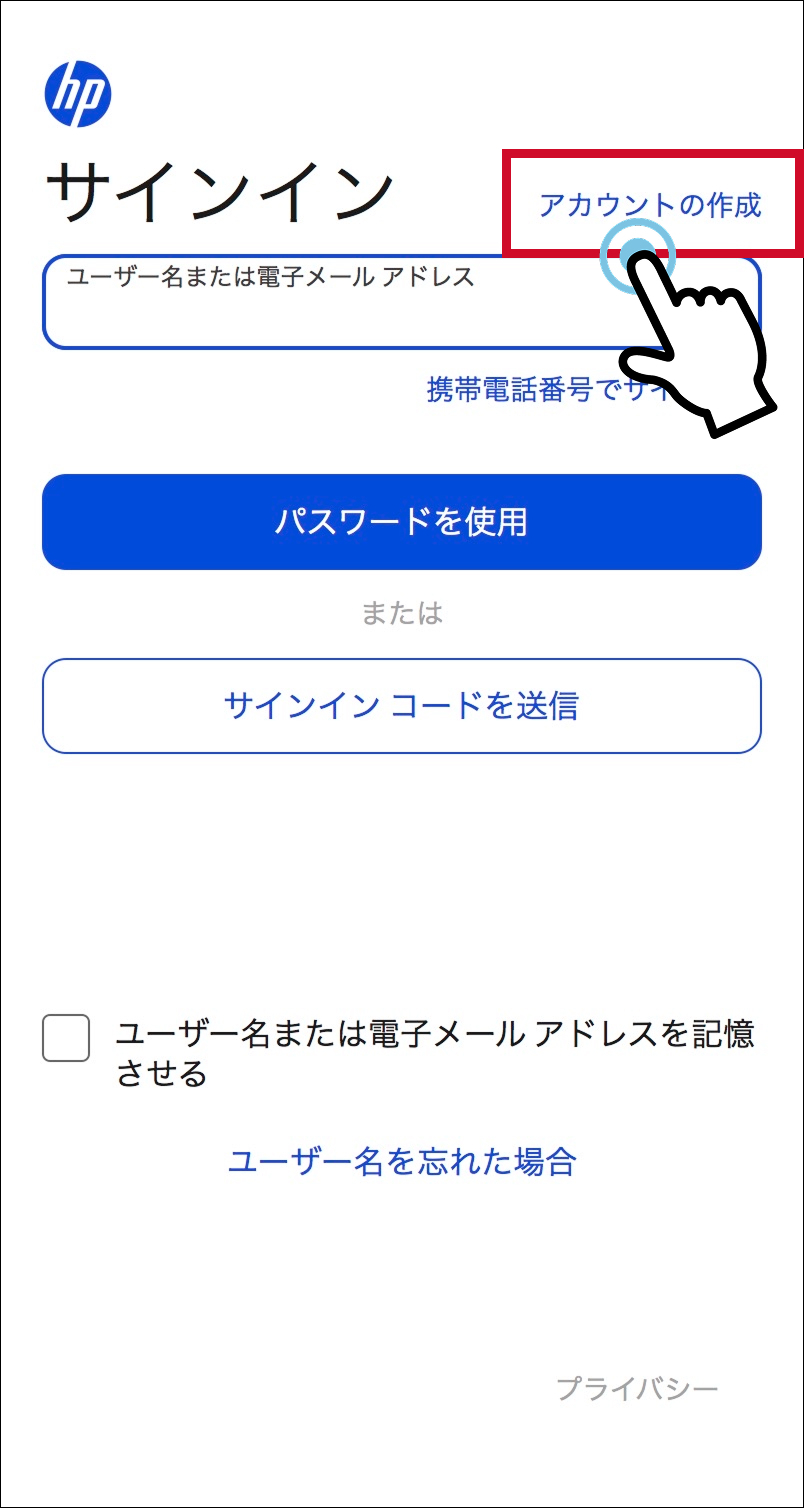 - HPのアカウントを作成する